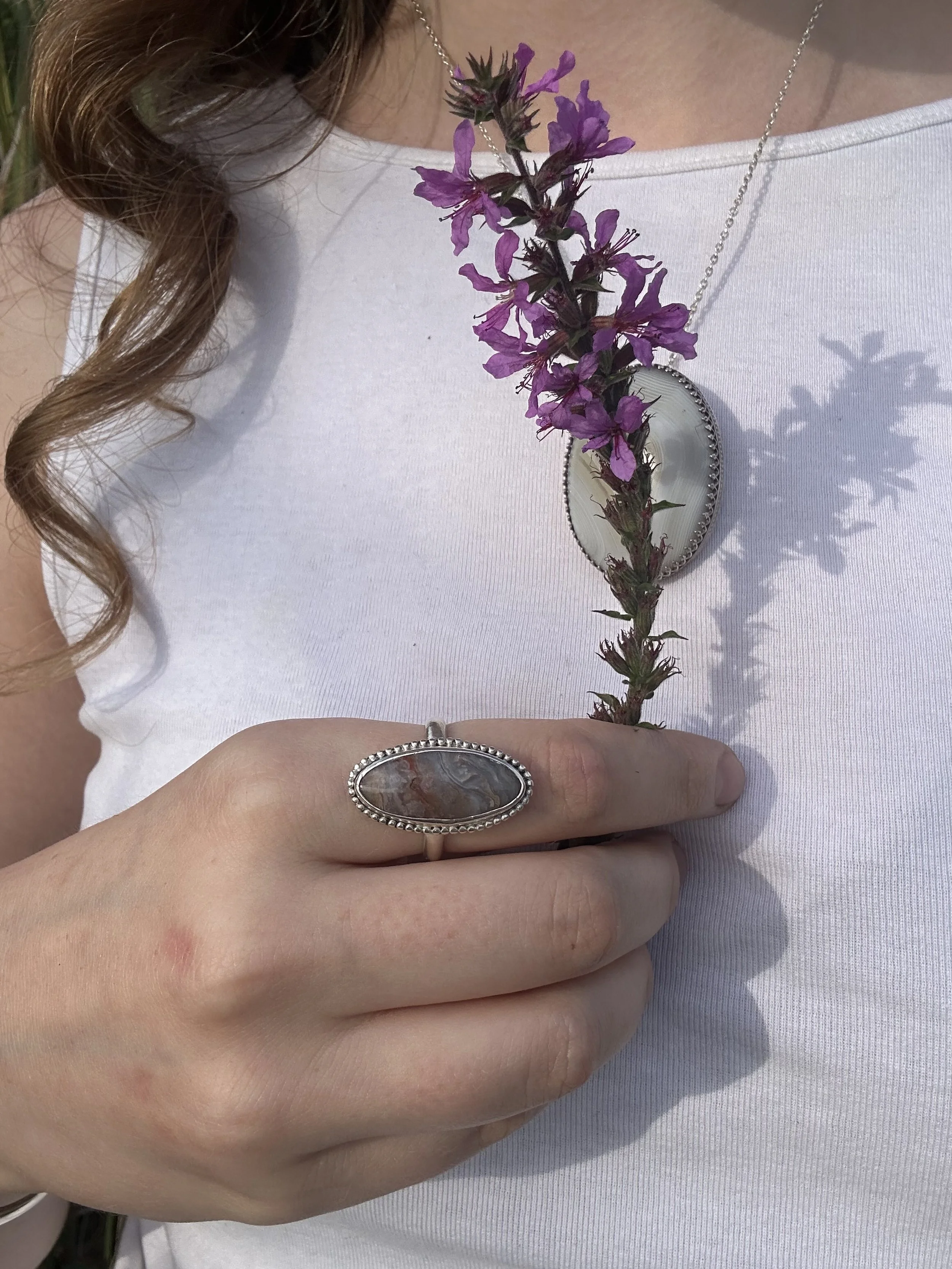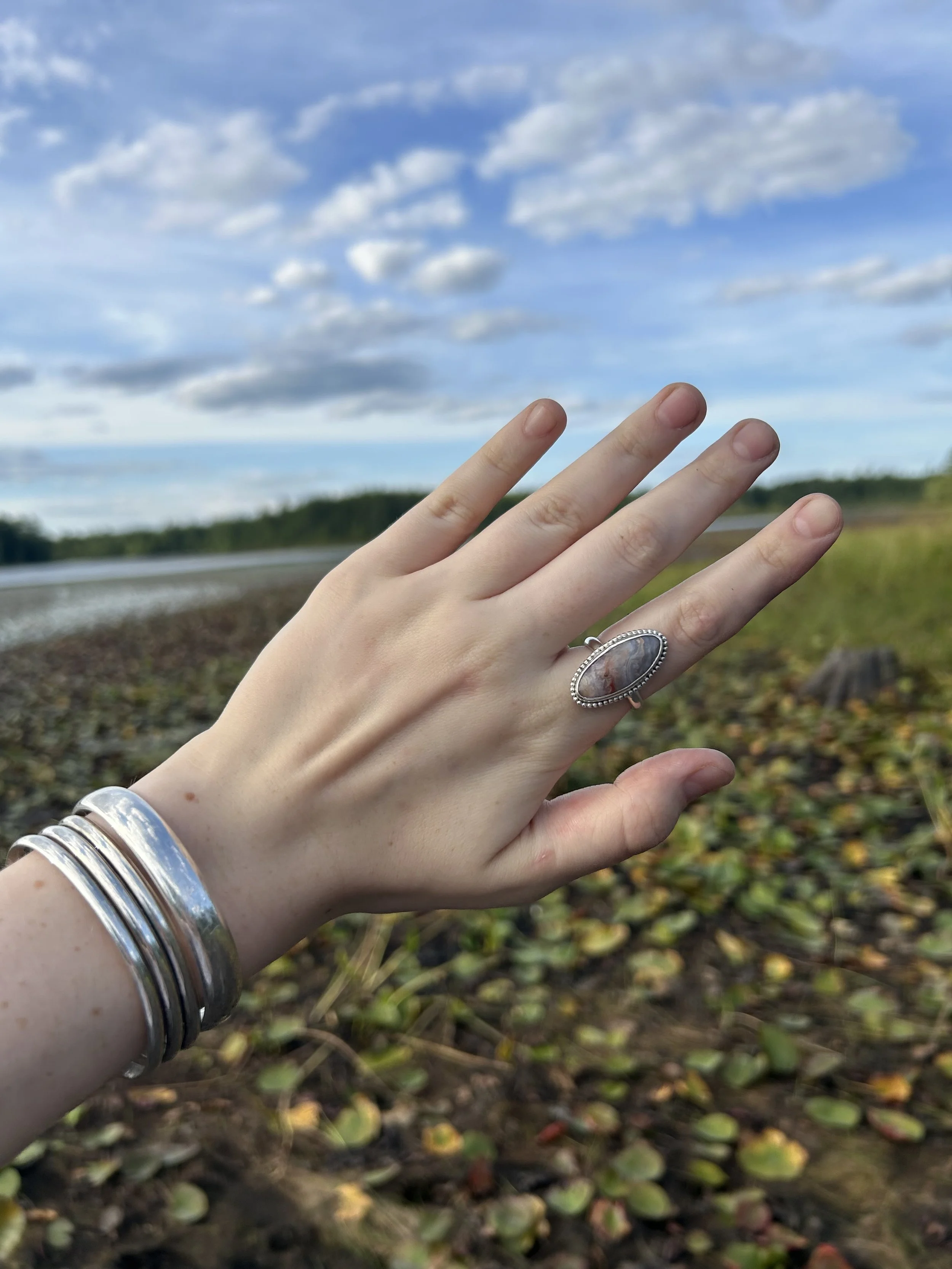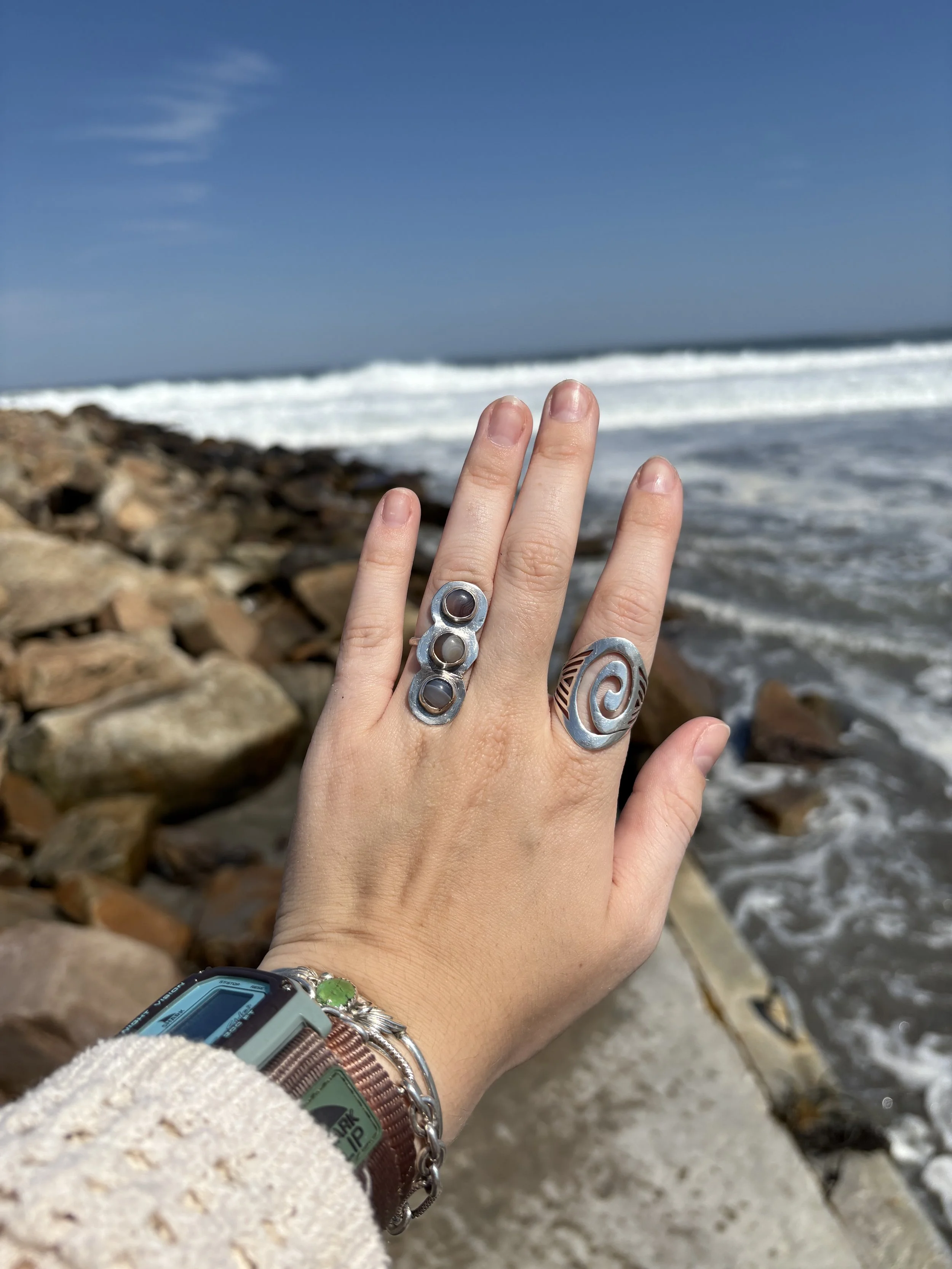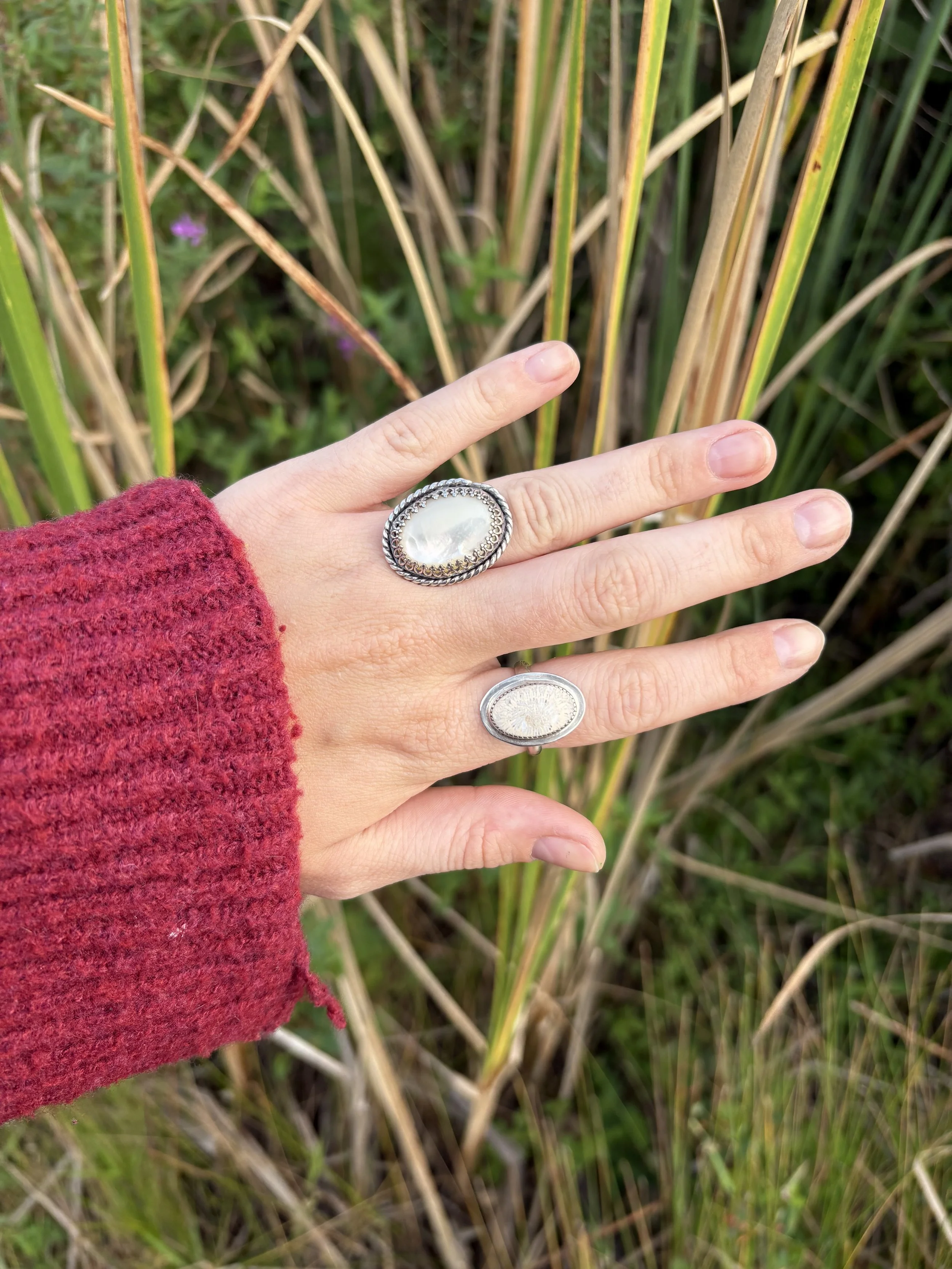 cameroni abalone cuff $180.00 silver trout $80.00 Sold out fossilized coral ring $60.00 Sold out Chunky green cuff $190.00 chunky band ring $115.00 Peace pendant $160.00 Crazy Lace Agate Ring $70.00 Sold out Jade ring $90.00 Mother of pearl ring $130.00 Montana Agate Ring $90.00 Sold out Ammonite ring $115.00 Agate Ring $100.00 Jasper Pendant $130.00 Paua ring $90.00 Coral Cuff $170.00 Agate Pendant $85.00 Sold out Agate earrings $120.00 Sold out